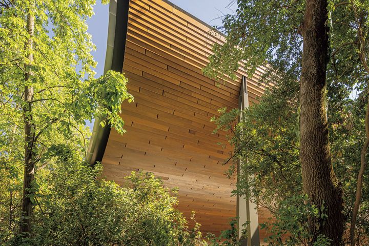 その〈CAM〉が、3年にわたる大規模改修を経て一新。今年2024年9月にお目見えした新棟を監修したのは、ご存じ隈研吾だ。全長100mの“エンガワ”が来訪者の目を奪う。隈いわく、「建築と自然が調和するシームレスな融合」。日本の木造家屋の特徴である縁側特有の、外と中の間のような曖昧な空間を、西洋の文脈で再構築した。