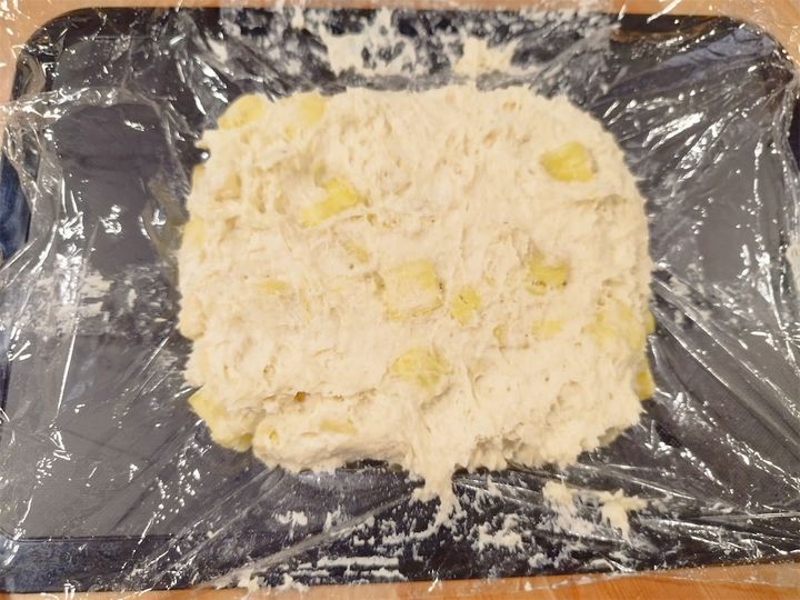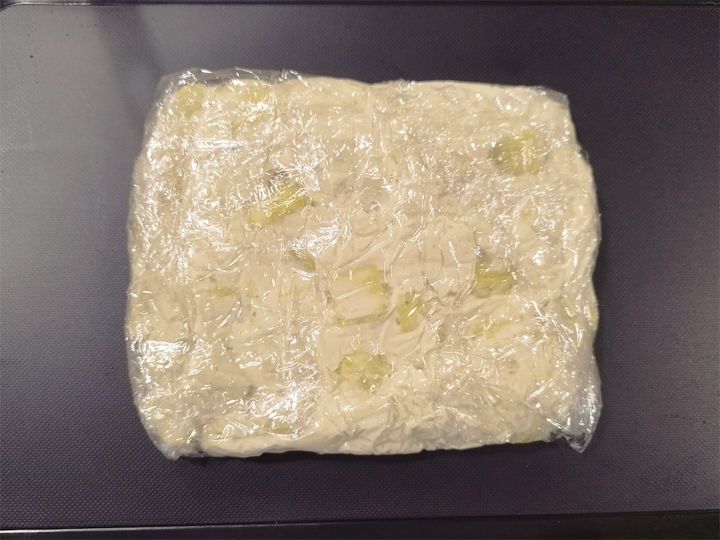 生地が手につきやすいので、ラップの上から抑えるようにしてくださいね。