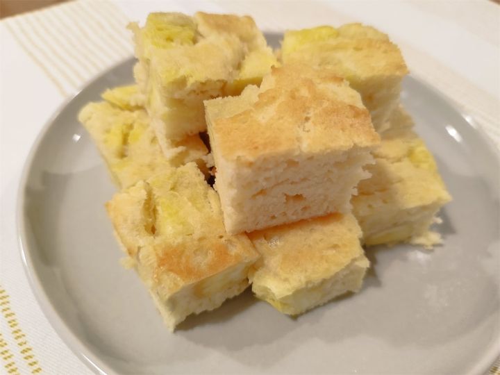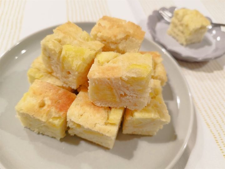 粗熱が取れたら切り分けて…完成です!四角く切ってお皿に盛り付けましたよ♪