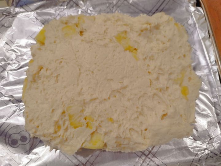 4.2のさつまいもの水分をキッチンペーパーで取り、3の生地の中に混ぜる。