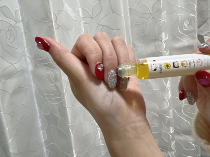 「家事で手が濡れたあとに、保湿としてネイルに塗って、そのまま首や肩もついでにコロコロしてと、とっても使いやすかったです♡リラックスアイテム、ネイルオイル、フレグランスと、コンパクトなのにこれ1本で全部済んじゃうのが最高です!」
