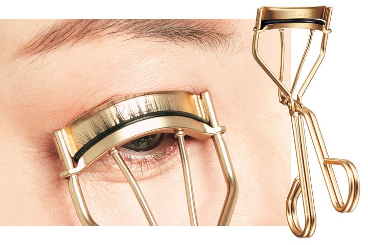 目頭から目尻まで短い毛も逃さずキャッチして立ち上げるリリミュウのビューラーはメイクさんイチオシ。根元から毛を挟みぱっちりカール。リリミュウ アイラッシュカーラー ¥1,980(コージー本舗)