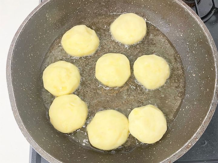 つぶして成形したら、揚げ焼きするだけと超簡単。