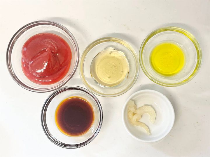 ソースの材料を混ぜ合わせたらラップをし、600Wの電子レンジで1分加熱します。ケチャップは加熱すると旨味とコクが増すそうです。