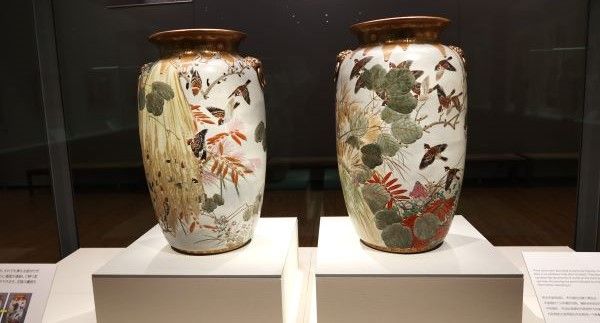 《稲穂に群雀図花瓶》 一対 濤川惣助、絵付:泉梅一 明治14年(1881) 第2回内国勧業博覧会にて御買上 皇居三の丸尚蔵館収蔵 通期展示
