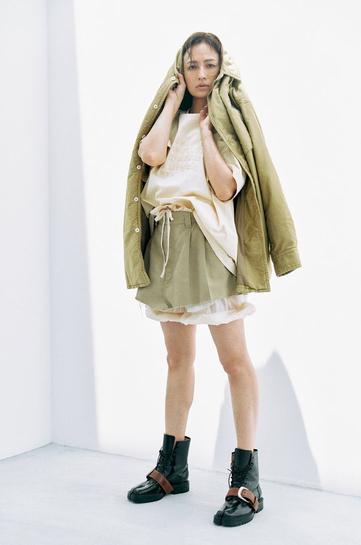 シャツ¥335,500、Tシャツ¥103,400、ショートパンツ¥234,300、ブーツ¥310,200(全てメゾン マルジェラ/マルジェラ ジャパン クライアントサービス)
