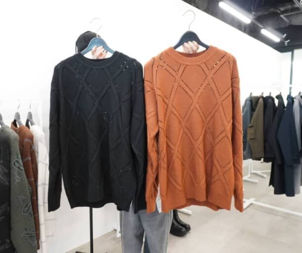 表情豊かな大きめの編み柄ニットは手持ちのアイテムとも好相性
