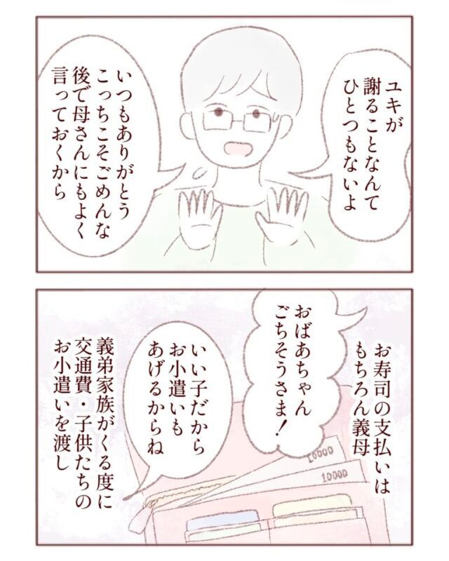 ところで、出前で頼んだお寿司の支払いはもちろん義母。さらに子供たちにはお小遣いも渡していました。