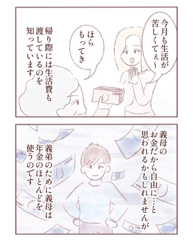 3. 訪れた義弟に1円も使わせない義母から義弟の嫁は更にお金をもらう。せびる義弟と貢ぐ義母[4-1]|ママ広場マンガ