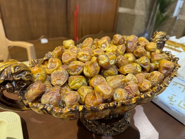 ただ見学に行っただけなのですが、ガイドがすぐにやってきて解説と案内をしてくれました。モスクツアーでは通常なのですが、無料でお水やデーツ、お菓子が待合室で食べ飲み放題。筆者も驚いたのですが、これがモスクのおもてなしスタイル。遠慮なくいただきましょう。大きなモスクということもあり、日本語の解説も一部あるので、初めてのモスク見学には最適です。ツアーは1時間半ほど必要だそうですが、筆者は時間がないことを告げて30分でまとめてもらいました。