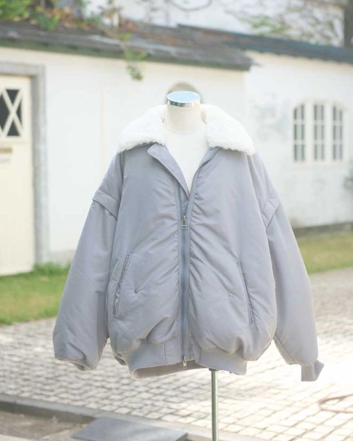 男性のLサイズくらいのルーズ感が新鮮。えりのふわふわボアは取りはずしできて優秀♡