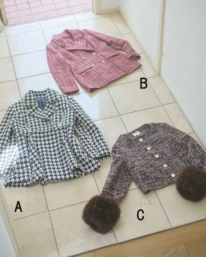 ▶ころんとした手元のファーがツボ♡ キラキラを忍ばせたツイードもロマンティック。