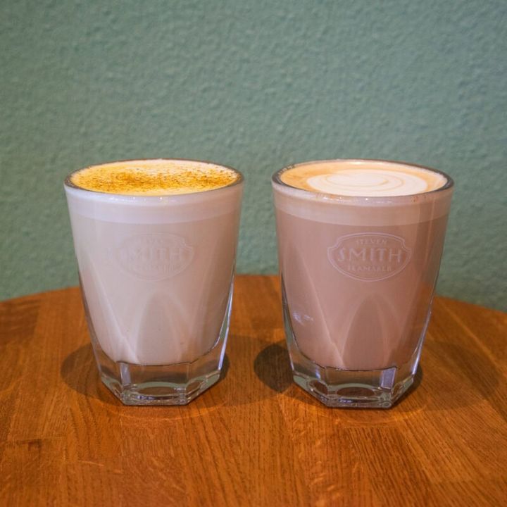 ほかにも、エスプレッソマシーンを使用して茶葉を抽出するティーラテがあり、そちらも味わったことがないテイスト。私がいただいたのはノンカフェインの「ゴールデン ライト ティー ラテ」。この時期にぴったりのからだを温めてくれるターメリックと複数のスパイスをブレンドしたお茶を使用し、ほんのり塩味を感じさせる複雑な味わい。ミルクはライスミルクとオーツミルクをブレンドしたミルクにも変更でき、オリジナルにカスタマイズできるのも◎。