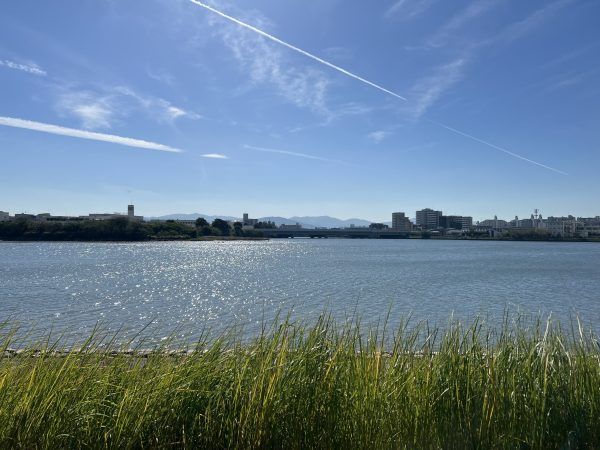 多々良川の遊歩道は、JR九州の列車や西鉄電車、飛行機、野鳥たちにも出会えるスポットです。その真隣にあるカフェminamo(ミナモ)で思い思いの時間を過ごしてみてはいかがでしょうか!!
