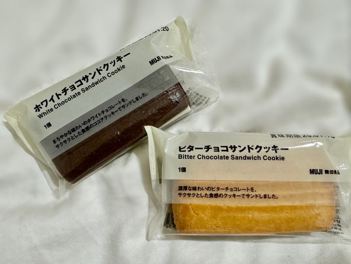 無印良品から発売されているチョコサンドクッキーは、濃厚な味わいのビターチョコレートをサクサクとした食感のクッキーでサンドした『ビターチョコサンドクッキー』と、まろやかな味わいのホワイトチョコレートをサクサクとした食感のココアクッキーでサンドした『ホワイトチョコサンドクッキー』の2種類⛄️