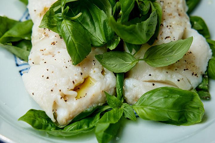 3. 目覚める香りの"蒸し魚とバジルのオイルがけ"