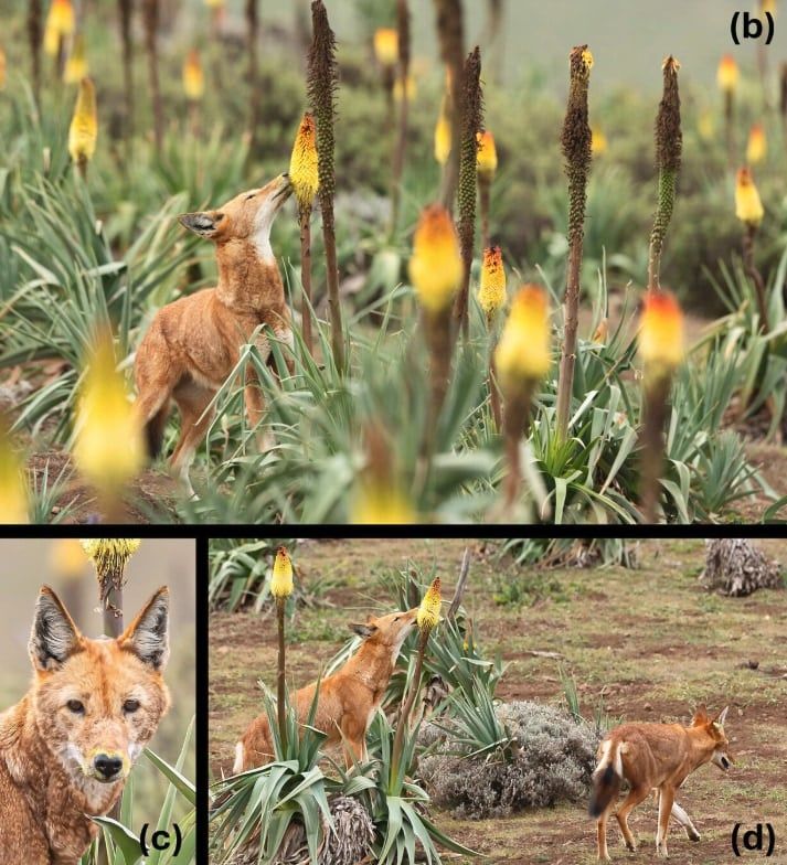 実際にオオカミによって受粉が成立していることが確認されたわけではありませんが、研究者たちはエチオピアオオカミの花蜜接触が送粉者として花の繁殖にも役立っているのではないかと考えています。