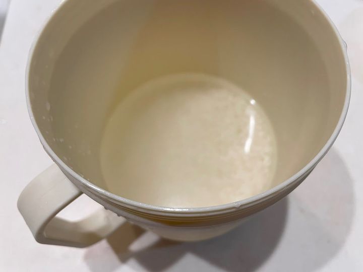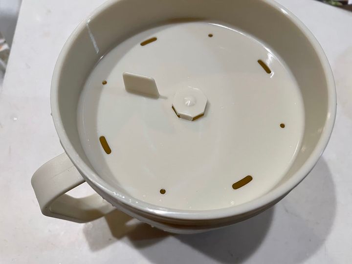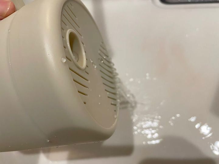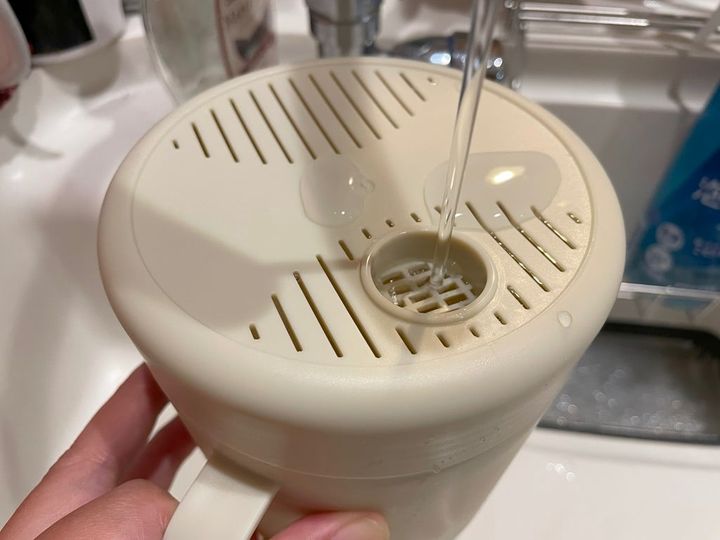 水を流すように穴が空いているので、マグを傾けて水を切ります。