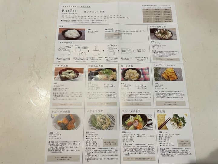 10種類のレシピが付属されています。ご飯だけでなくポトフやポテトサラダ、かぼちゃの煮物なども作ることができます。