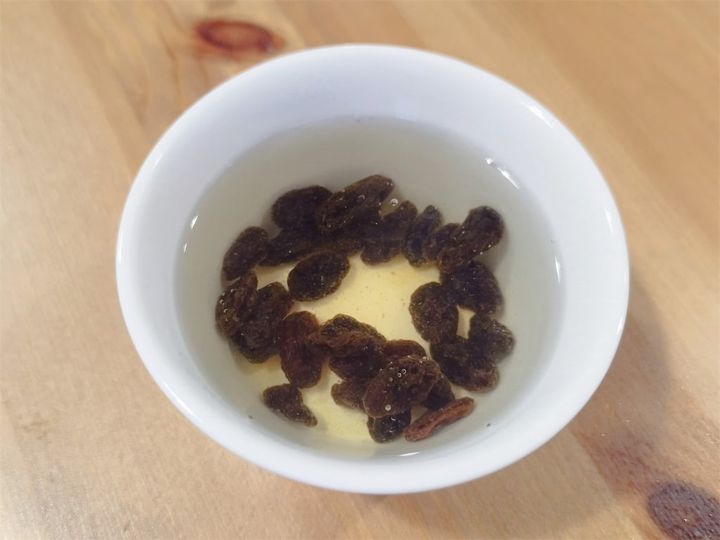 レーズンは湯通しするとふっくらしておいしくなりますよ♪
