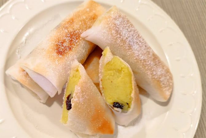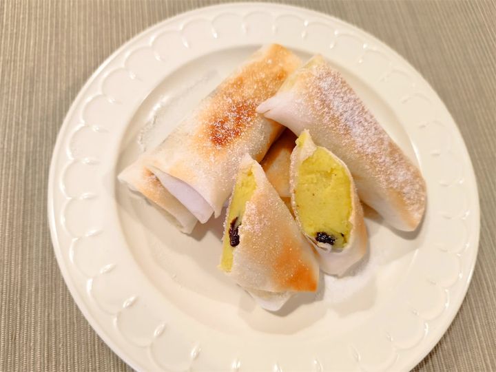 春巻きの皮を巻くだけで、こんなおしゃれなスイーツになるなら、これはアリですね♪