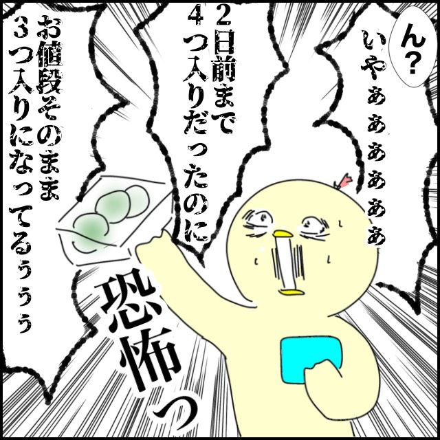 3. 恐怖の物価高騰。4つ入りの団子がお値段そのまま3つ入りになっていた|アツアゲの育児絵日記