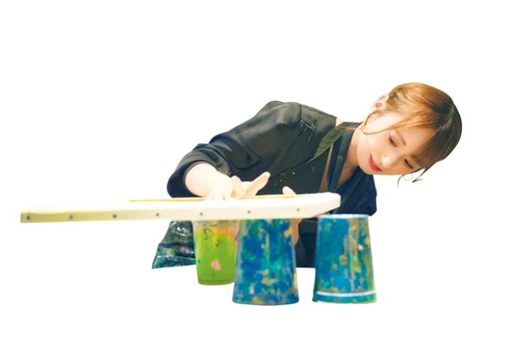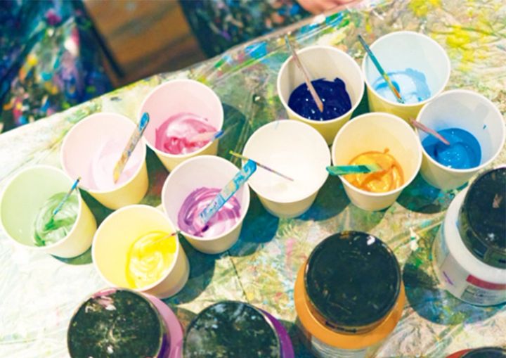 数十種類の絵の具の中から自由に選んで、混ぜるだけ。パール色を足してキラキラと発色させたりとパターンは無限大。