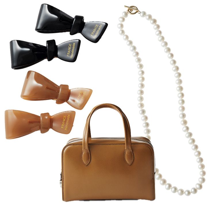 ネックレス¥69,300(マリハ)ヘアクリップ各¥2,750(すべてデコルテアクセサリー)バッグ¥31,900(トゥティエ)靴/私物