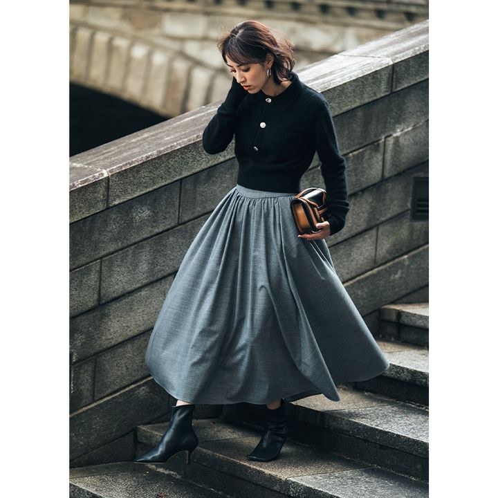 「見た目もマインドも女性らしくいられる上、パンツより足元オシャレの幅も広がるスカート。それだけで甘いので、スカートの日は他を盛らず、メークもジュエリーも引き算のバランスを意識します」