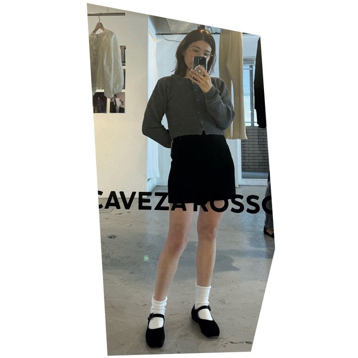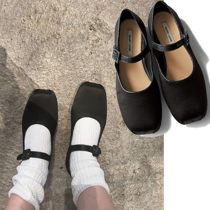 「服よりも手軽に甘さをちょい足しできる小物は、良い母感のあるクラシカルテイストやバレエコアに注目。スクエアトウのメリージェーンはNYのブランドSANDY LIANGで」