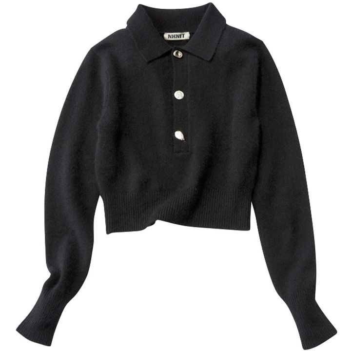 好印象間違いなしの 衿付きニットは コンパクトさがより女性らしい