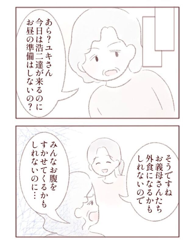 すると義母は「みんなお腹を空かせて来るかもしれないのに昼食の準備をしないの?」と咎めてきました。