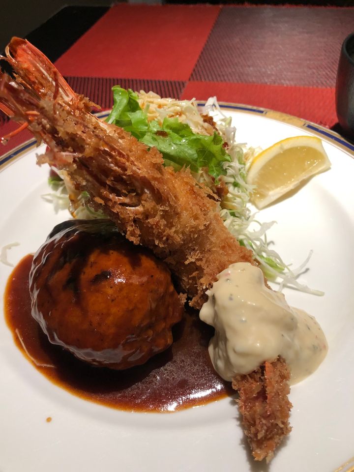 【京都・鴨川から徒歩3分】洋食好きにはたまらない!エビフライとハンバーグの最強コンボ