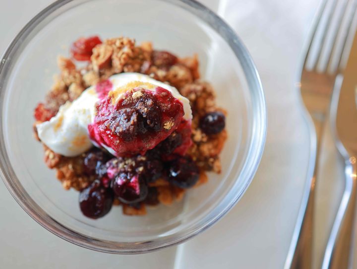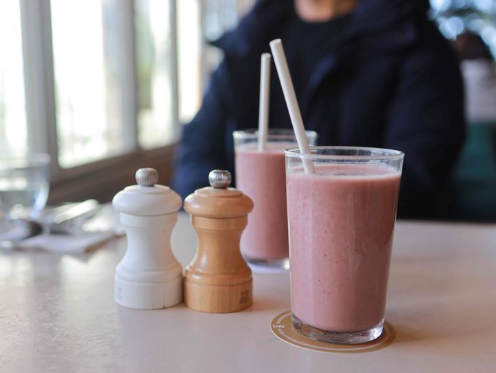 モーニングコースは、サンライズスムージー からスタート。バナナ、ベリー、グリークヨーグルトなどが入ったもこもこしたテクスチャーが特徴的。ほんのり感じられる酸味が、朝の目覚めに嬉しいです。