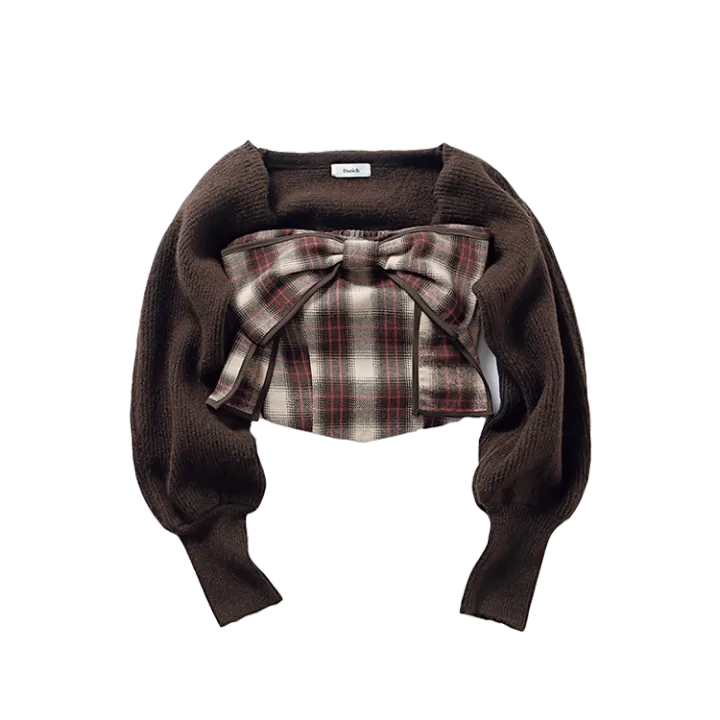 チェック柄&リボンで存在感ある特別な1枚をトップスに!こっくりカラーで季節感も意識◎。