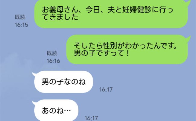 3. 義母に夫とのグループLINEで報告すると…「男の子なのね…あのね…」思いもよらぬ衝撃の返信が!