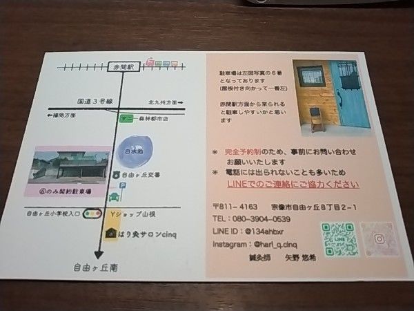 完全予約制で午後二時半から受け付けています。 普段は施術中になるので電話よりもLINEかメールですとコンタクト取りやすいとのことです。