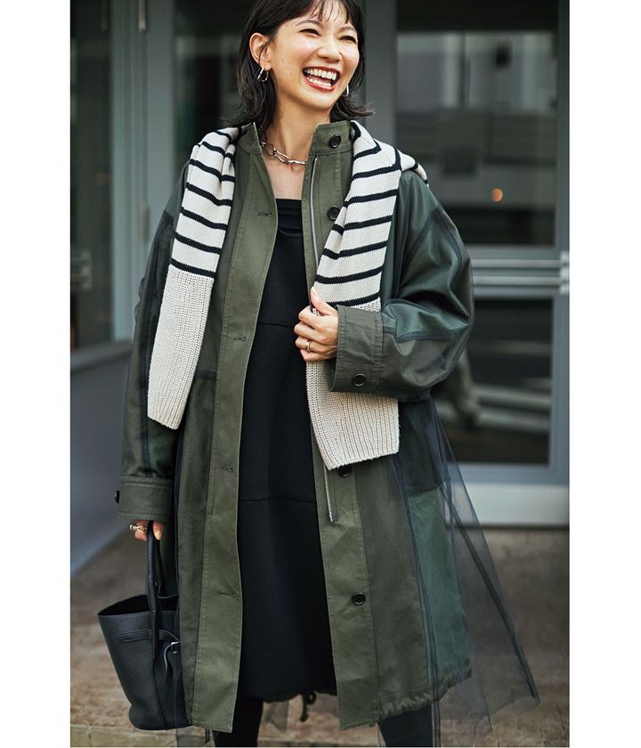 『男前なコートに甘いチュールを重ねているとこが今どき!しかもカジュアル感が抑えられてキレイめコーデにも最適。ミリタリー面を表にして裾からチュールをチラ見せしてもいい!』