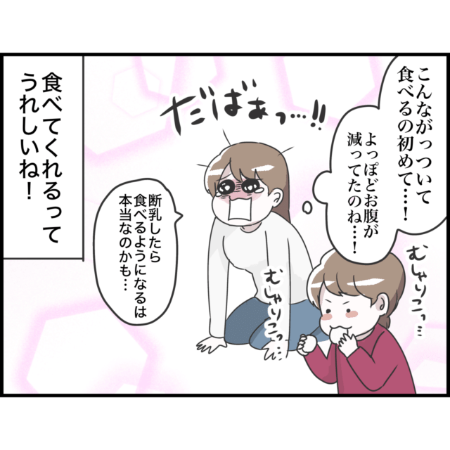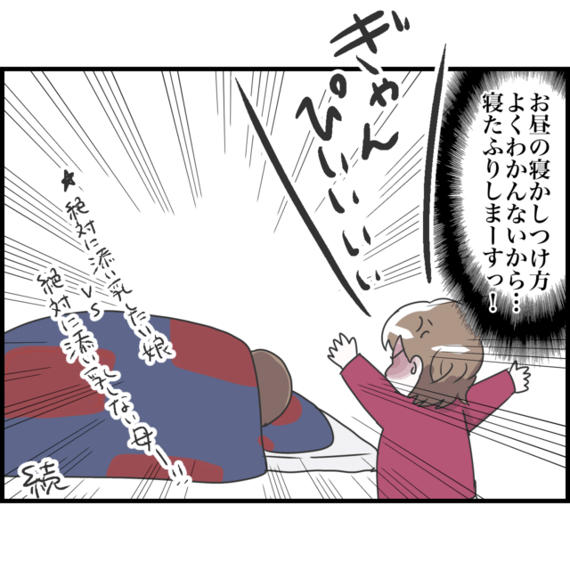 断乳初日にパンをがっつく娘に歓喜も、お昼寝は添い乳を求めて泣く娘に寝たふりで対抗。断乳すると決めた日[15]|しおは娘育児中。