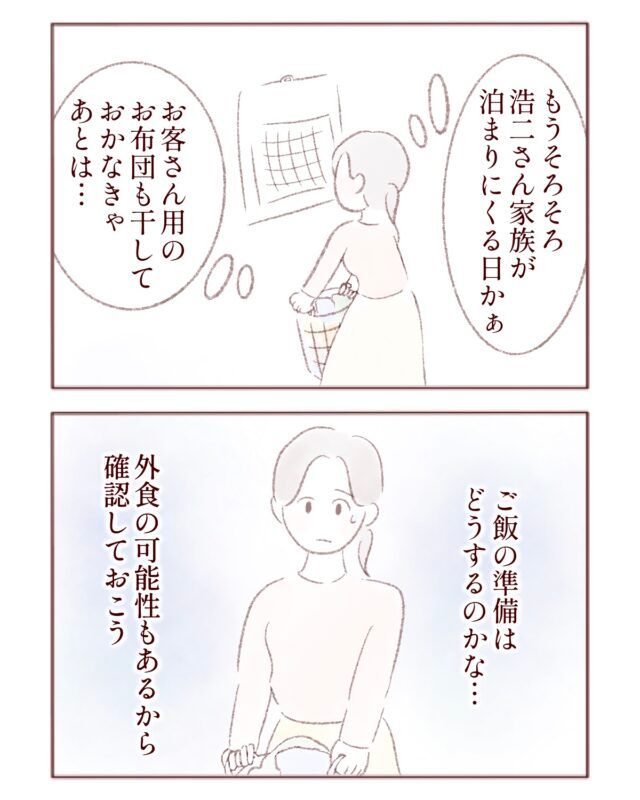 毎月2回、浩二さん家族が必ず泊りに来るので、カレンダーをチェックしながら私は準備のことを考えていました。