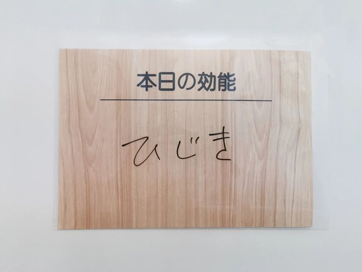そのアイデアとは本日の効能ボードをお風呂に設置すること。温泉ではその泉質が心身の何に効能があるのか書いてありますが、八羽さんはそれをまねしたボードを設置したのですね。