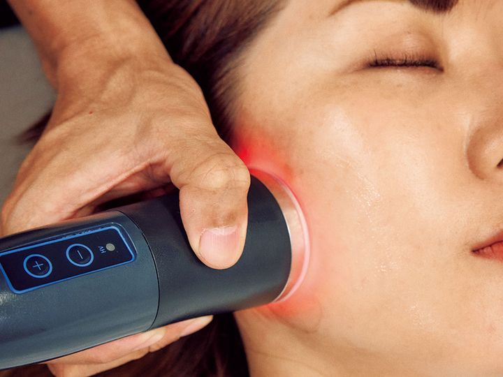 機器を使用して、凝り固まった深部インナーマッスルを緩めて、骨格のズレを動かしやすくする準備。