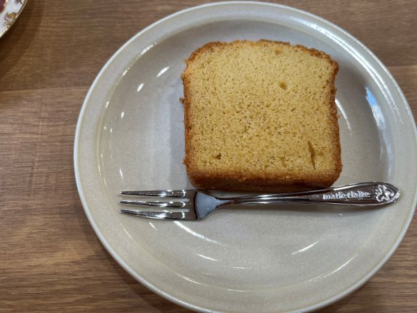 オープンから午後2時まではモーニングセット(700円)があります。今回は朝ごはんを食べてからお伺いしたのでモーニングセットは次回の楽しみにしておきます。米粉パンサンド(450円)、あんこコッペパン(350円)などなかなか気になるメニューがありますが、ここはグッと堪えて米粉とキビ糖の自家製パウンドケーキ(300円)とホットコーヒー(500円)をお願いしました。