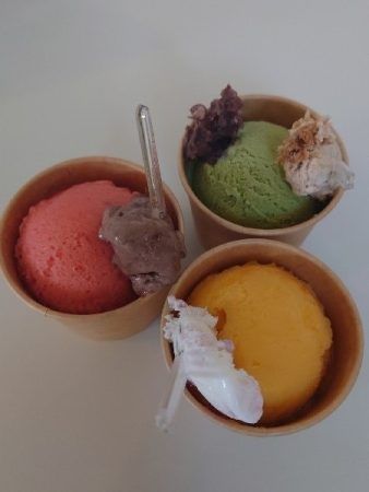 この夏は何度か子供たちのおやつタイムでジェラートを食べに訪れました!子供たちも、もちろんジェラート大好きです。その時食べたジェラートは、ゴロゴロイチゴ、メッチャマッチャ、サンサンマンゴーを頂きました。