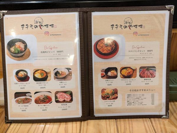 普通のメニューもあります。(笑)気になるメニューは、「チヂミのやすす」だけに、チヂミランチセットと豚肉焼肉定食です。韓国の焼肉は豚肉のイメージがあります。なんでだろう。サムギョプサルのイメージが強いせいでしょうか(るなるなの感想です)。めっちゃ、流行りましたからね~。