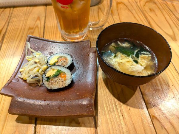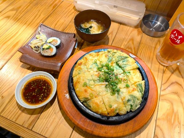 名物チヂミに、キンパ&もやしナムル・スープが付いて900円
