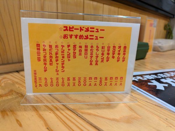 スピードメニューの中にナムルもキムチもありますね。夜は酒のつまみになりそうですね。