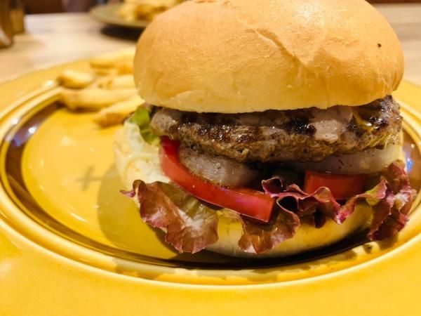 肉厚のパティをはじめ食べ応えを十分に感じられるハナオカフェのハンバーガー。
