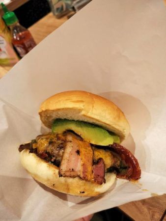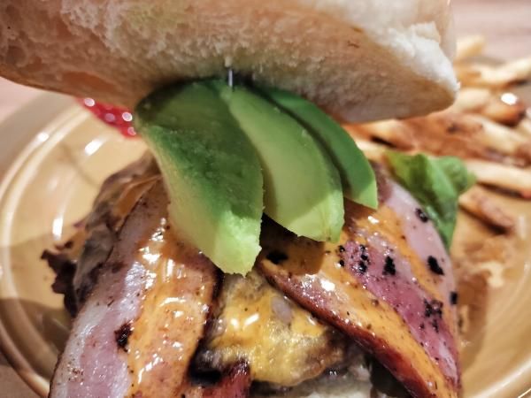 うん!間違いなく美味しい〜!!(惚) 口に広がる、アボガドとベーコンの存在感。 隠れていたパティも一口食べて驚き! お肉の濃厚な旨味が引き立ちます。チーズのとろ~り感とバンズ、そしてソースの相性もバツグンで食べ応えがある!