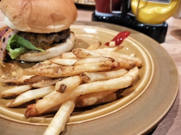 今回はハンバーガーを注文しましたが、ガーリックシュリンプやグリル系のお料理、サラダなどもあり、バリエーション豊富でしたよ!